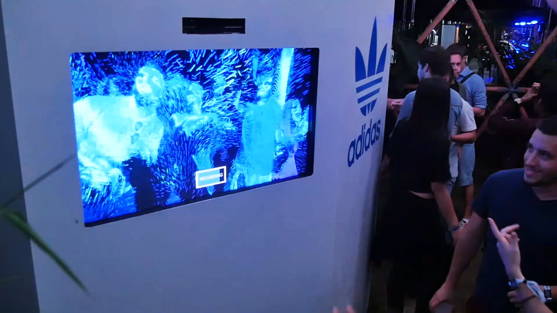 During The Peacock Society Festival I work with SUPERBIEN on an interactive video installation for Adidas. Capturing in real time the moves of the festival-goers positioned in front of the screens thanks to Kinect technology, the device transcribes these movements in a cloud of graphic points and records the session live. The festival-goers then have the possibility to save their video session and send it on their mailbox to rediscover their passage during the festival.
