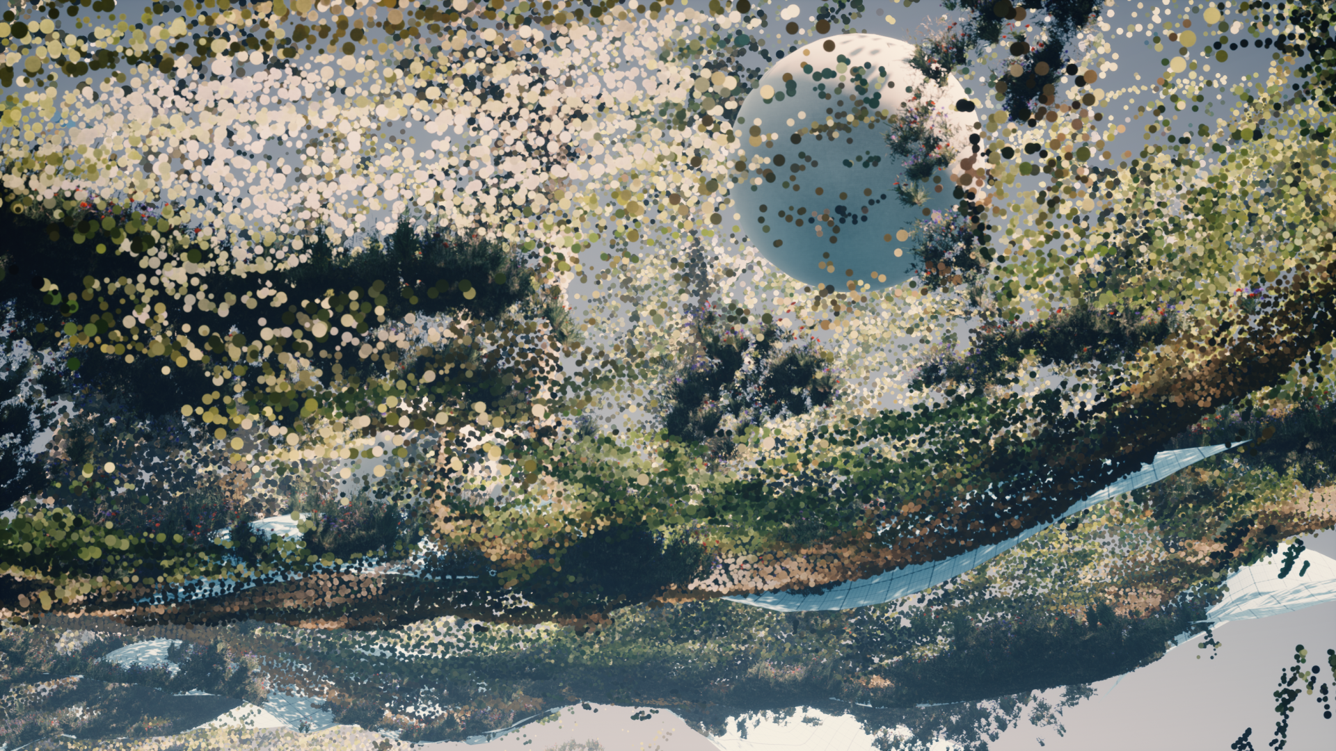This particular study puts in image a slow contemplation of this process of reconstruction of nature by machines.